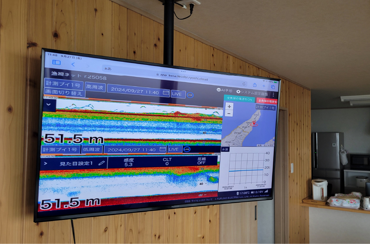 魚群の位置や規模を把握できるソナー、海中の状態を確認できるライブカメラを活用し、網を上げる判断や安全性の向上につなげています。これらの技術は、効率だけでなく働き方の改善にも寄与しています。